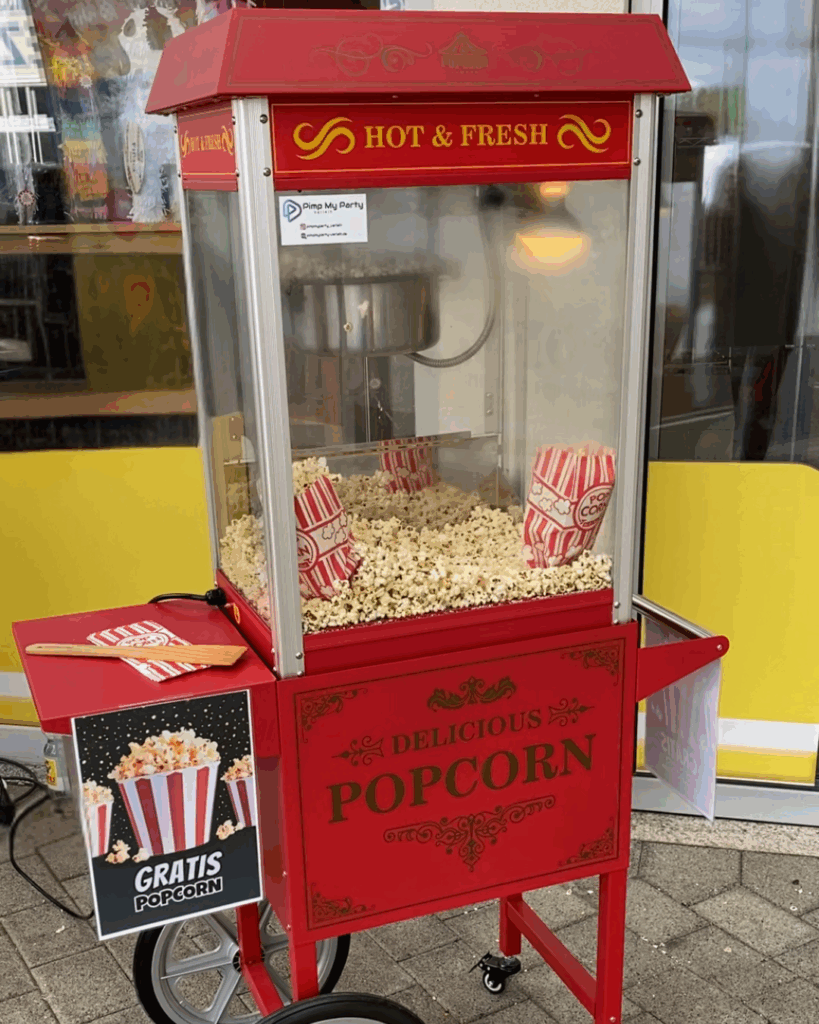 Popcorn in Kinoqualität begeistert nicht nur Kinder, sondern auch Erwachsene. Neben dem einzigartigen Geschmack, besticht unsere Maschine ebenfalls mit einem ansprechendes Retro-Design samt Wagen.