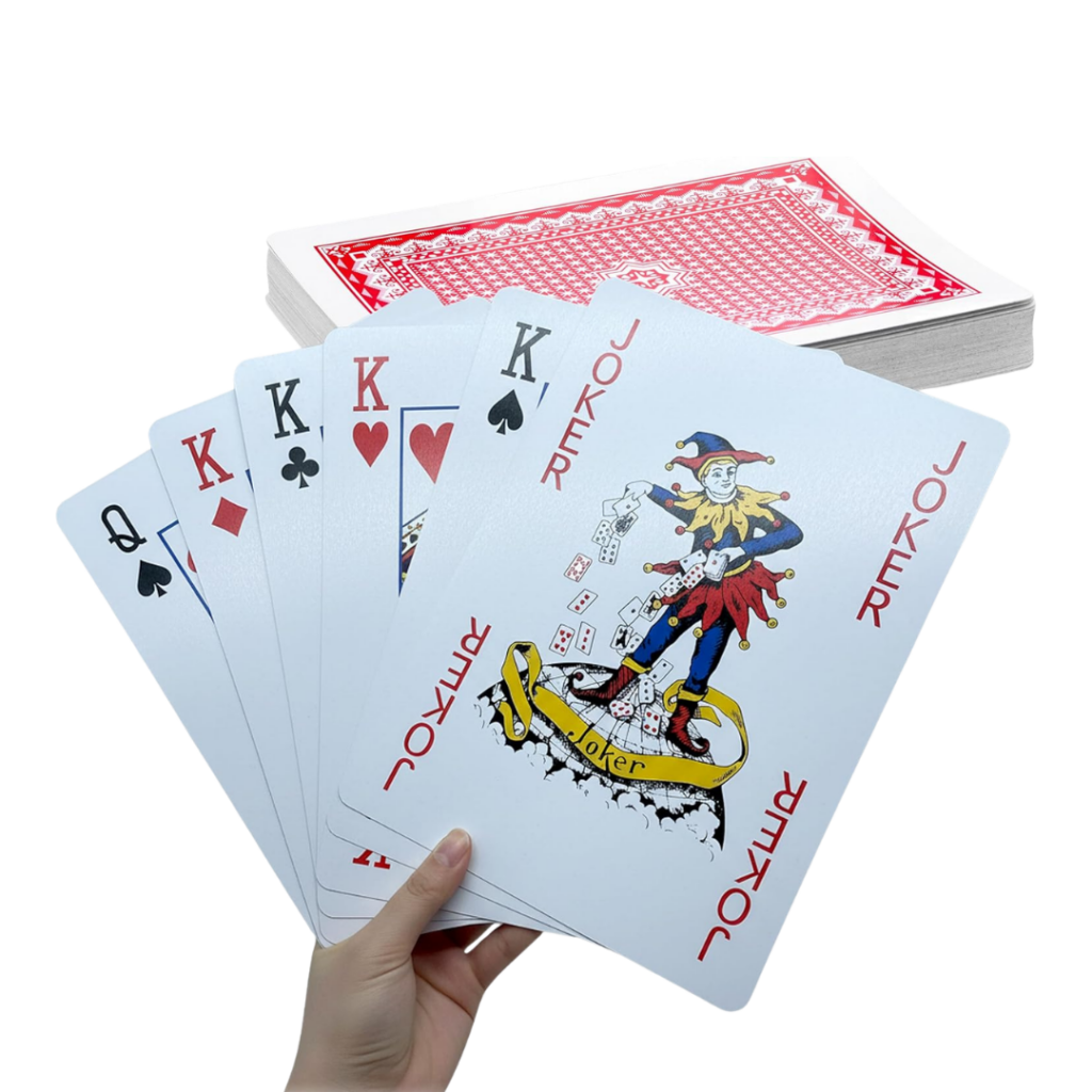 Ob Poker, Skat oder lustige Kartenspiele – im riesigen Format wird aus jedem Spiel ein witziges Erlebnis. Die übergroßen Karten (A4-Format) sorgen für Aufmerksamkeit, Spaß und jede Menge Unterhaltung bei deinen Gästen.